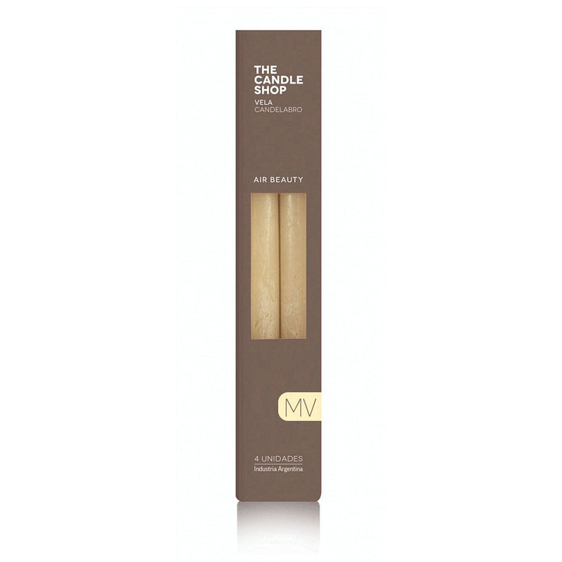 Vela para candelabro de 2,2 cm de diámetro x 25 cm de largo en caja por 4 unidades