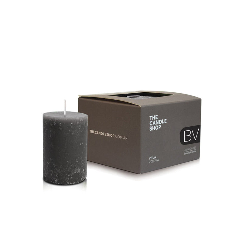 Vela votiva de 4 cm de diámetro y 5 cm de alto en caja de 4 unidades.